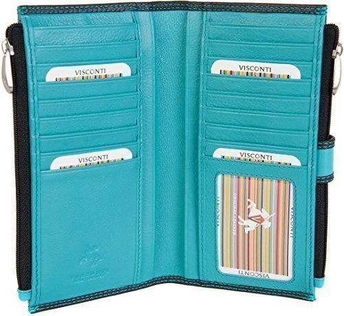 Best Seller! Visconti Soft Leather Black/Aqua Women's Purse Wallet 17 Card Slots CD23 - New! Review