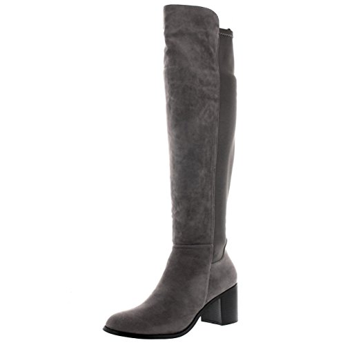 Best Seller! Womens Stretch Knee High Riding Block Heel Cleated Sole Winter High Boot - Grey - UK6/EU39 - KL0070 Review
